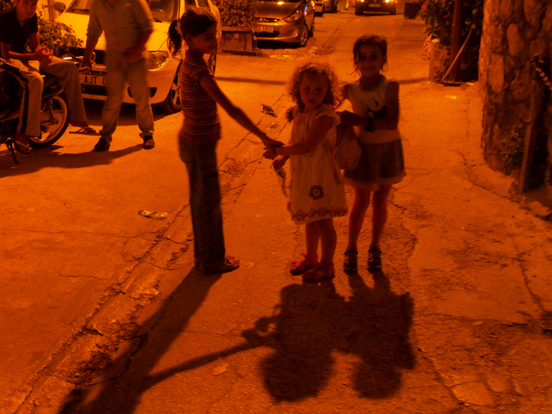 Il potere del linguaggio comune del gioco: questa piccola storia ha infatti inizio in un parco ad Antiochia, dove due bimbe siriane e una bimba italiana iniziano a giocare insieme, si coccolano e in qualche modo si capiscono. Chiediamo se vogliono venire con noi a mangiare qualcosa e ancora una volta le 3 bimbe di età diverse ci stupiscono per la infinita facilità con cui giocano insieme, parlandosi in due lingue diverse eppure comprendendosi. Si fa sera e le accompagniamo verso casa, incrociando la mamma che davanti a casa ci invita a prendere un tè.