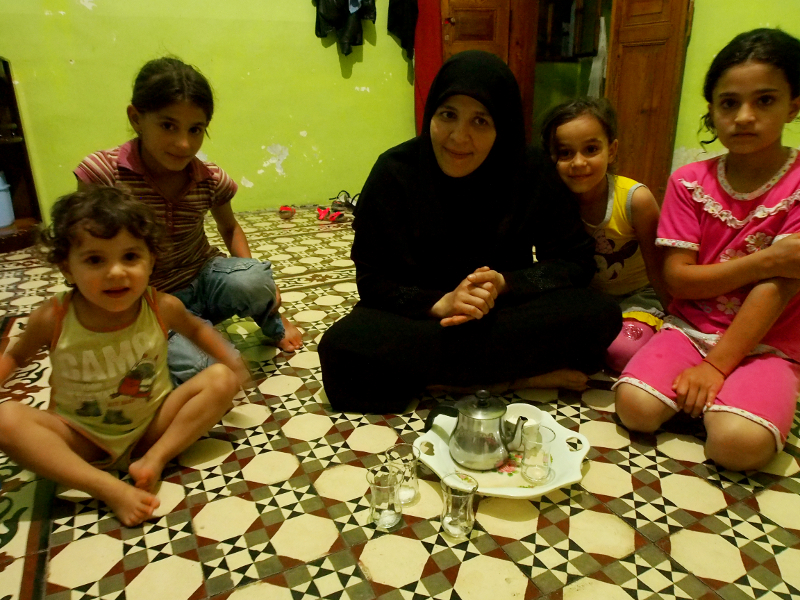 Il potere del tè, centro della civiltà materiale araba: il tè nelle culture arabe e in Turchia è onnipresente, il supremo lubrificante sociale. Qualsiasi occasione in qualsiasi ora del giorno è accompagnata da un bicchiere di tè; offrire un tè è il miglior modo per ringraziare, mostrare ospitalità, socializzare. Anche in questo caso, dopo esserci tolti le scarpe e accomodati per terra, abbiamo preso volentieri una tazza di tè tra le mura dell’unica stanza che fa da casa ad una famiglia di ben 9 persone, usata come soggiorno durante il giorno e come camera da letto durante la notte. I 9 sottili materassini ripiegati e impilati in un angolo della stanza; i 7 bambini siriani che giocano insieme alla bambina italiana e i grandi che in qualche modo cercano di trovare il modo di comunicare dal momento che la famiglia siriana, “fortunata” rispetto ad altre essendo riuscita a rifugiarsi ad Antiochia 6 mesi fa da una parente, parla esclusivamente arabo.